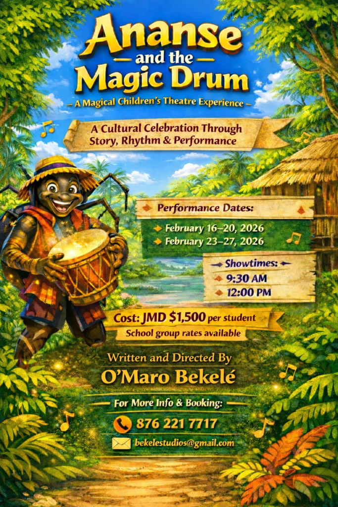 Ananse and the Magic Drum is one of Bekelé’s flagship productions, It’s an original children’s theatre experience inspired by storytelling traditions, rhythm, and Jamaican cultural imagination. It invites young audiences into a world of wonder, mischief, memory, and meaning. This production blends story, rhythm, performance, and cultural texture into an experience that is both entertaining and memorable.